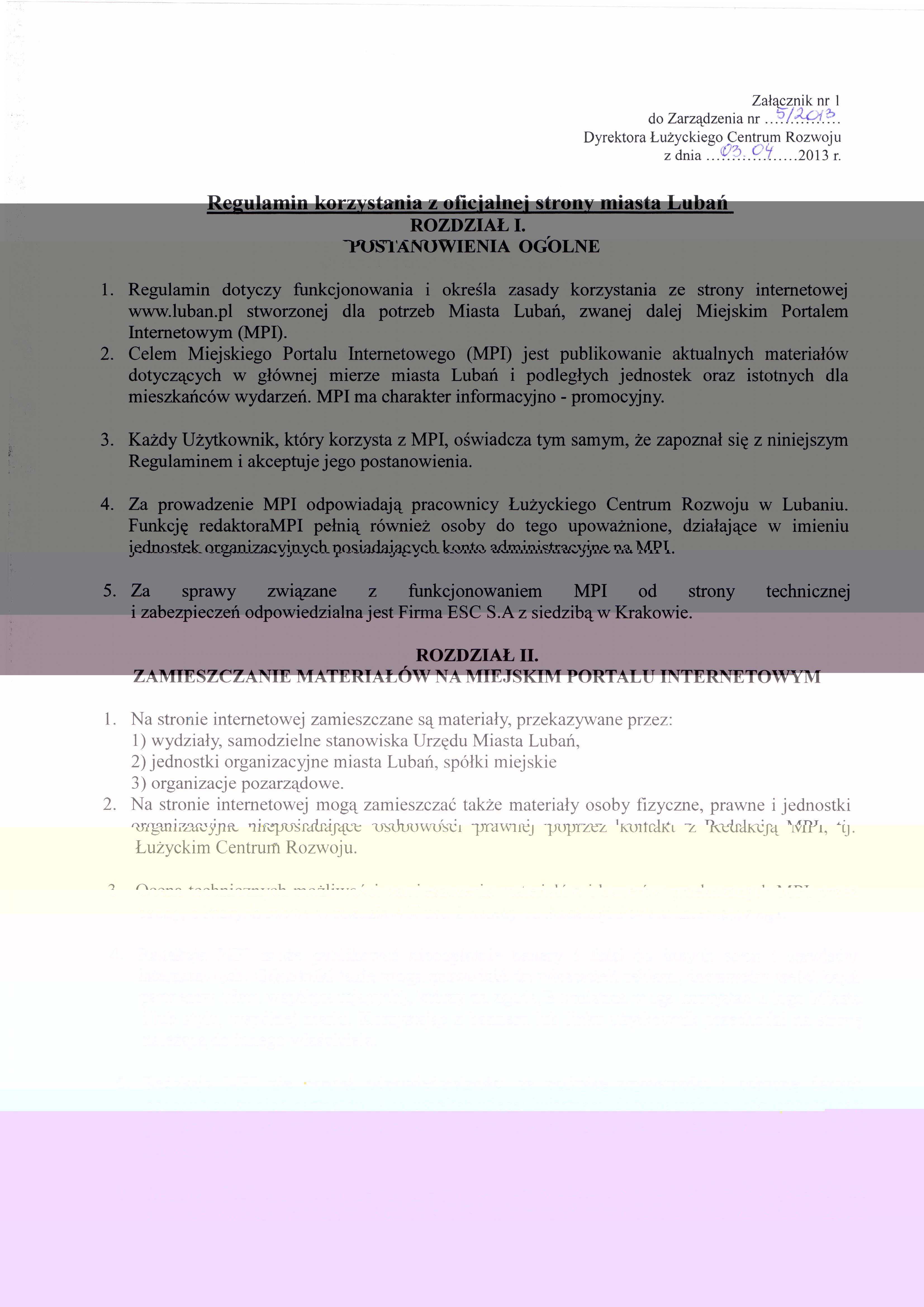 Techniczne i formalno-prawne aspekty współpracy mediów z redakcją MPI w Lubaniu porządkuje dostępny poniżej Regulamin Miejskiego Portalu Internetowego.